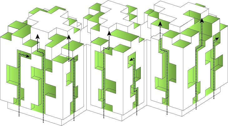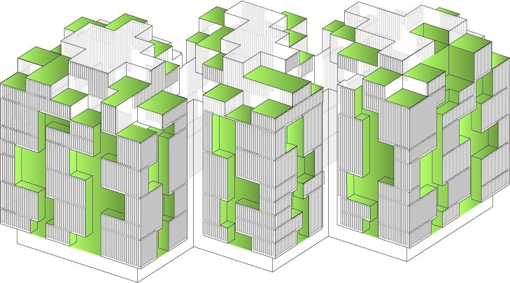 Through a series of cuts, voids, and strategic setbacks, the volumes are articulated to enrich both the urban façade and the interior spatial quality. Enhanced daylight access, diversified views, and the integration of terraces and semi-open spaces are direct outcomes of this design strategy.